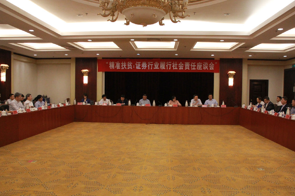 2017年8月25日,中国证券业协会在宁夏银川组织召开“精准扶贫:证券行业履行社会责任”座谈会?;嵋橹荚谘肮岢谷鹑诠ぷ骰嵋楹腿と诨跫喙芟低衬曛屑喙芄ぷ髯富峋?,总结、交流资本市场服务脱贫攻坚实践经验,巩固、提高证券公司扶贫工作成果。会议由协会党委书记、副会长方向瑜主持。