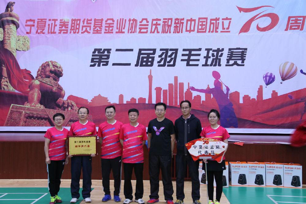 为庆祝中华人民共和国成立70周年,进一步展现宁夏辖区各会员单位健康向上、勇于拼搏的精神风貌和广大从业人员青春活力,促进监管部门与会员单位之间的交流和友谊,增强宁夏证券期货基金业协会的凝聚力,营造宁夏经济社会发展和谐氛围。宁夏证券期货基金业协会第二届羽毛球比赛于10月18日在宁夏总工会体育馆成功举办。
