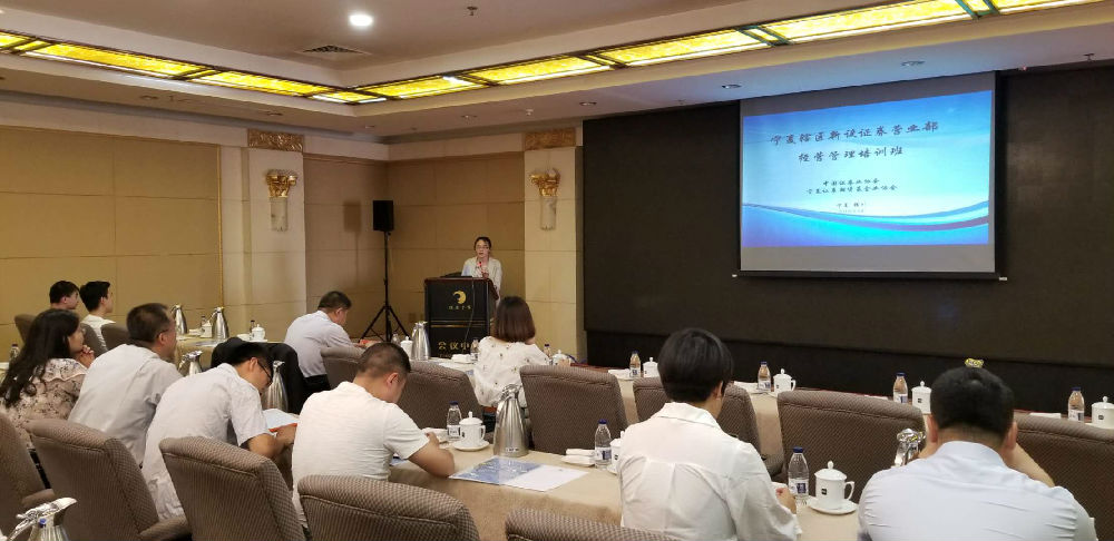 为帮助宁夏地区新设证券营业部提升团队管理能力、规范业务运作,中国证券业协会与宁夏证券期货基金业协会于2018年5月18日在银川悦海宾馆联合举办 “宁夏辖区新设证券营业部经营管理培训班”。新设证券经营机构共60人参加了培训。