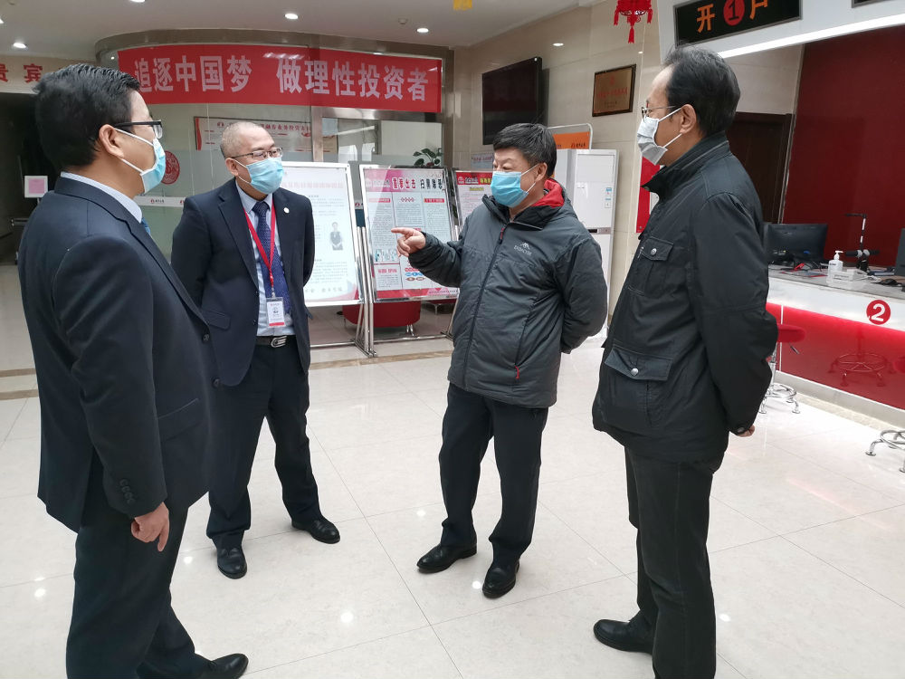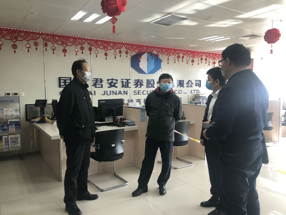 2月2日,宁夏证监局局长马炜、副局长石恩源深入辖区机构调研疫情防控及复工复产情况。马炜局长一行先后前往南京证券银川民族北街营业部等4家客户数量及业务量较大的分支机构,现场检查了各机构防疫物资配备、人员测温、场地消毒、室内通风、来访人员登记等防疫措施的执行情况,详细了解各机构开市后为投资者提供非现场交易服务及现场业务办理等情况。马炜局长强调,当前新冠肺炎疫情防控工作仍处于关键阶段,各机构不能有丝毫的懈怠,要继续引导投资者线上交易及办理业务,不断改进服务方式为投资者提供便利条件;对确需临柜办理的业务,坚持采取预约、提前沟通等多种方式,错开时间段以避免人员聚集;严格做好现场来访人员的测温、登记和消毒等工作。马炜局长同时指出,各机构可依据自治区防疫指挥部相关要求,在保证交易及业务正常运行的前提下,采取弹性上班、错峰上班、线上办公等方式有效精简现场人员,一线工作人员也要做好自我防护,机构负责人要及时掌握员工的身体状况和防疫防护情况,关心和帮助有困难的人员,共同做好疫情防控工作。