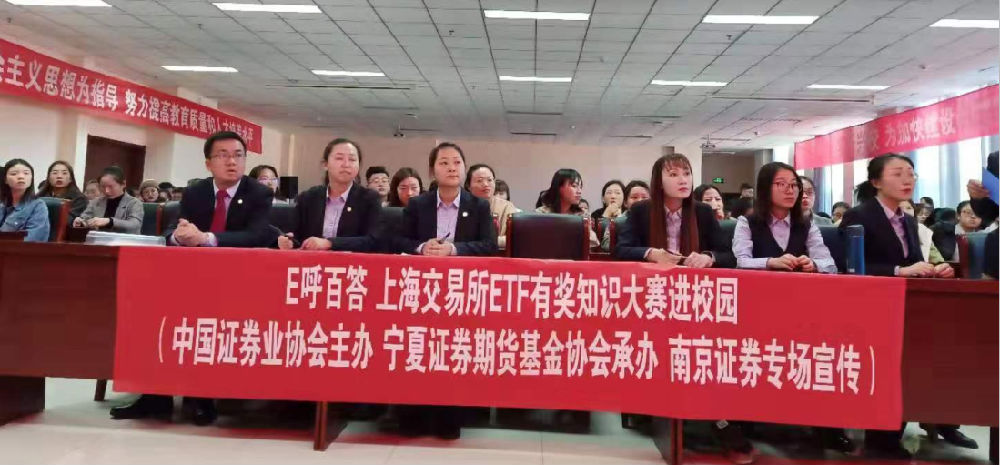 在中国ETF产品成立十五周年之际,上海证券交易所联合中国证券投资基金业协会举办首届“E呼百答”——ETF知识大赛。宁夏证券期货基金业协会积极响应,联合南京证券宁夏分公司下辖多家营业部:中卫证券营业部、银川怀远西路营业部、吴忠迎宾大街营业部、石嘴山大武口营业部、石嘴山惠农营业部、固原营业部、同心营业部7家营业部,启动知识竞赛“高校赛道”。