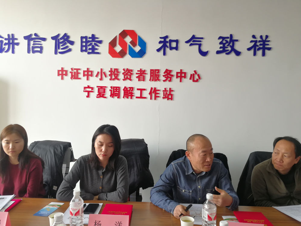 宁夏证监局法制处负责人做总结讲话,她围绕进一步加强与投服中心合作,全面做好辖区投资者纠纷调解工作提出几点建议,一是要充分认识调解工作的重要意义,通过借助投服中心专业力量加强调解员队伍建设,助力辖区纠纷调解工作水平全面提升;二是要增强做好调解工作的责任感,提升专业素养。宁夏辖区的矛盾纠纷数量呈现上升趋势,大家要提高认识,未雨绸缪,增强本领,勇于担负起行业和投资者的期望和寄托;三是要加强调解工作的组织保障。强化投服中心宁夏调解工作站的管理、完善与法院诉调对接工作、加强业务培训和交流、推动会员单位签署纠纷调解自律承诺书,落实小额速调机制,在行业内广泛宣传纠纷调解工作,扩大调解影响力。