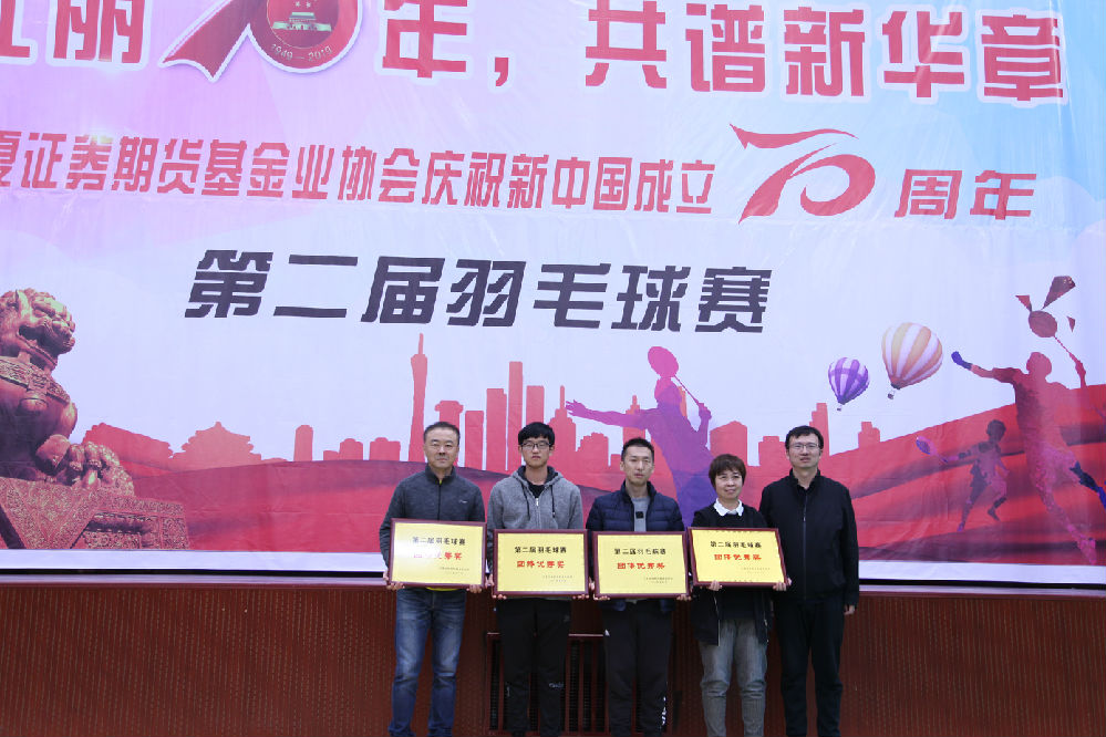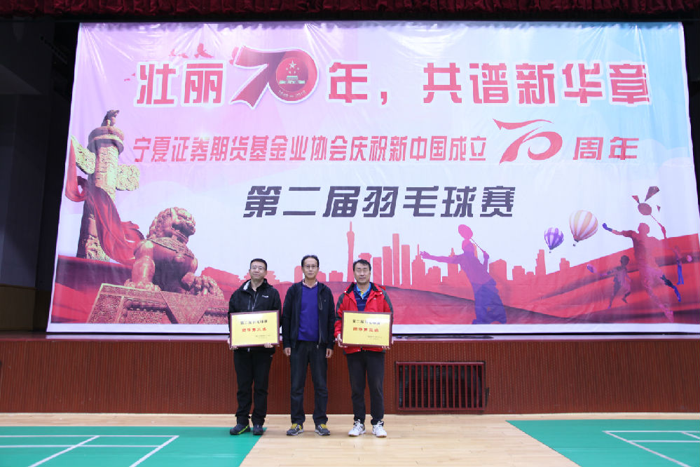 为庆祝中华人民共和国成立70周年,进一步展现宁夏辖区各会员单位健康向上、勇于拼搏的精神风貌和广大从业人员青春活力,促进监管部门与会员单位之间的交流和友谊,增强宁夏证券期货基金业协会的凝聚力,营造宁夏经济社会发展和谐氛围。宁夏证券期货基金业协会第二届羽毛球比赛于10月18日在宁夏总工会体育馆成功举办。