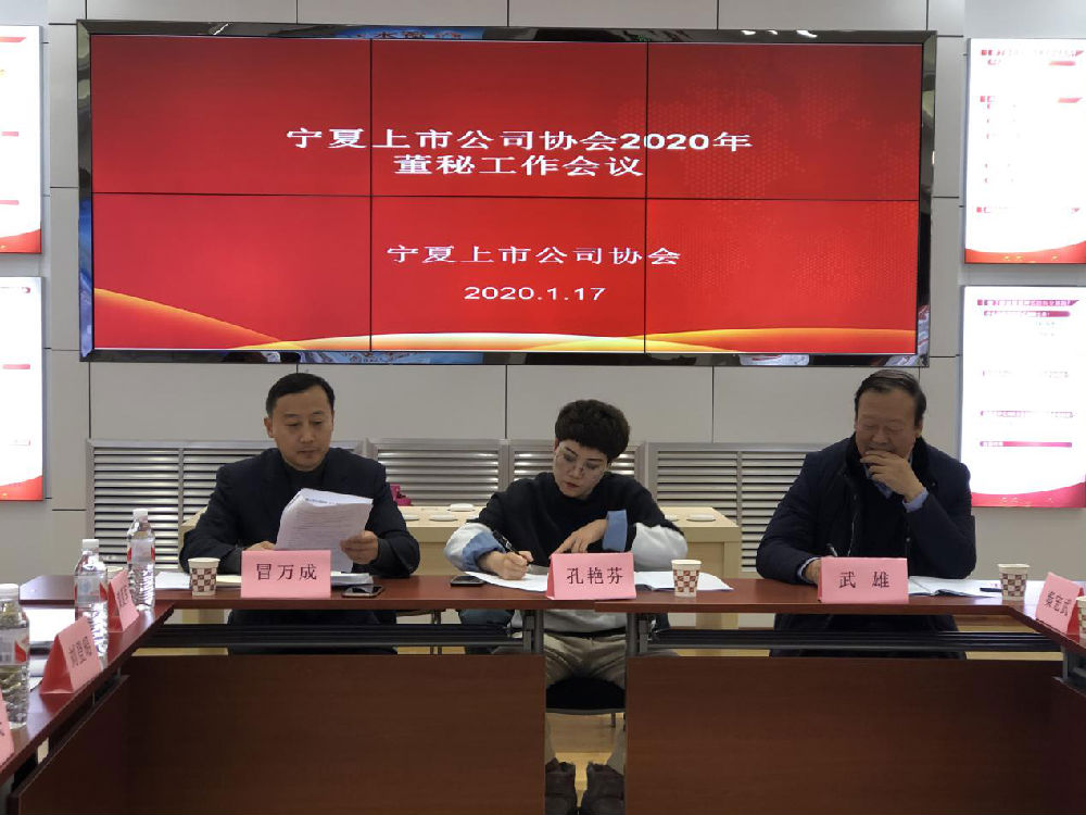 为加强辖区上市公司董秘之间的交流,广泛征求董秘意见,促进协会2020年工作开展,宁夏上市公司协会于1月17日组织召开2020年董秘工作会议。辖区上市公司董秘、证代参加了会议?;嵋橛尚崦厥槌の湫壑鞒郑闹ぜ嗑?/span>相关领导列席会议。