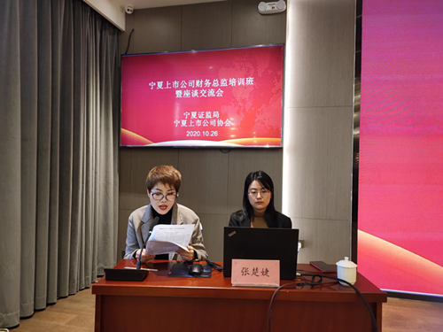 为帮助辖区上市公司、拟上市公司学习最新监管政策,准确掌握新会计准则执行要求,提高上市公司财务总监履职能力,增进各公司财务总监之间的沟通、交流,在宁夏证监局的指导下,在统筹做好疫情防控的情况下,宁夏上市公司协会于10月26日成功举办“宁夏上市公司财务总监培训班暨座谈交流会”。辖区上市公司、部分拟上市公司、新三板挂牌公司财务总监、财务负责人、主管会计共计40余人参加了培训。