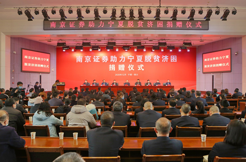 据介绍,今年是南京证券成立30周年,也是南京证券进入宁夏、服务宁夏的第15年。多年来,南京证券始终秉持“热爱宁夏,扎根宁夏,服务宁夏,建设宁夏”的方针,在做好资本市场服务的同时,积极开展扶贫公益活动。今年3月,南京证券结对帮扶4年的国家级贫困县宁夏同心县成功退出贫困县序列。