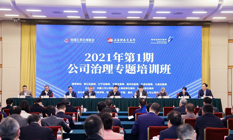 中国上市公司协会积极落实中国证监会关于《开展上市公司治理专项行动》的工作部署,根据构建公司治理良好生态,抓好“关键少数”培训的工作要求,2021年3月26日,中国上市公司协会与上海证券交易所、深圳证券交易所联合举办了本年度“第一期上市公司治理专题培训班”。中国证监会副主席阎庆民、浙江省副省长朱从玖出席本期培训并致辞。证监会上市部主任李明、中国上市公司协会会长宋志平、中国上市公司协会执行副会长宋丽萍出席开班仪式。