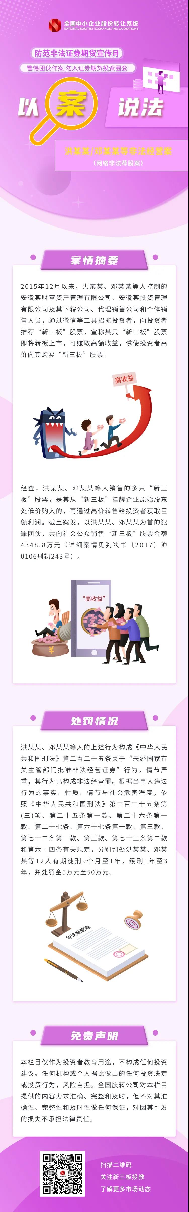 【编者按】近年来,屡有不法分子冒充正规证券经营机构,通过社交软件、相亲网站等渠道,散布虚假“消息”,以高额投资收益诱骗投资者通过非正当途径购买新三板股票,导致投资者遭受损失。全国股转公司投教基地根据近期收集的已宣判案件,提示投资者甄别非法证券活动,有效识别风险,合规参与市场。