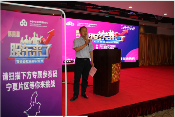 由投服中心联合内蒙古等六地证监局共同主办的《股东来了》2021投资者权益知识竞赛已于5月15日正式启动,宁夏赛区(内蒙古片区)积极开展《股东来了》2021宣推活动。5月29日,宁夏证券期货基金业协会联合南京证券、南方基金在银川共同举办2021证券市场投资主题投资策略报告会,此次报告会与《股东来了》2021宣推活动有机结合,帮助投资者准确把握2021年度证券市场投资主题与行情节奏,引导投资者树立“理性投资、价值投资、长期投资”理念,达到了良好的宣传效果。