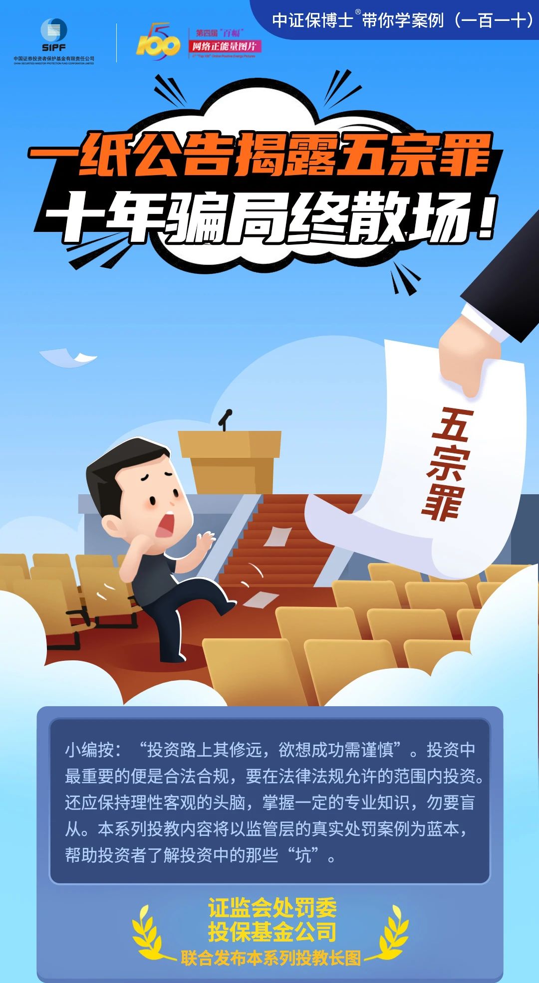 金融知识普及月 |【中证保博士带你学案例】一纸公告揭露“五宗罪”,十年骗局终散??!