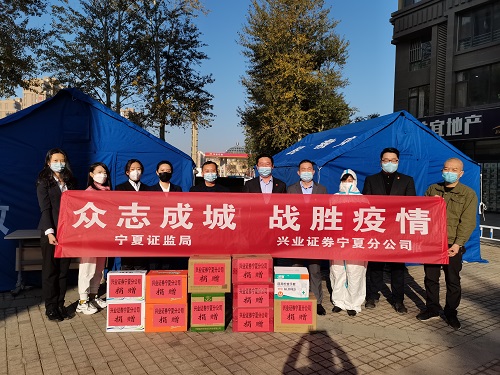 10月18日,银川出现本土新冠肺炎确诊病例,抗疫战役在塞上江南激烈打响。疫情就是命令,防控就是责任。在疫情发生后,宁夏证监局、宁夏上市公司协会、宁夏证券期货基金业协会积极号召动员,凝聚起宁夏资本市场决胜防控疫情的磅礴力量。辖区上市公司、新三板挂牌公司、证券期货经营机构牢记初心使命,在做好疫情防控工作的同时,坚决扛起防疫重任,主动践行社会责任,为打好疫情防控阻击战贡献行业力量。