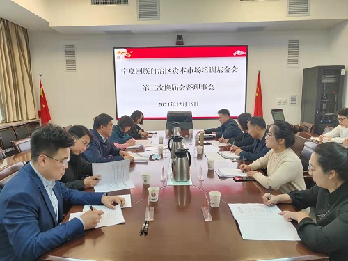 12月16日,宁夏资本市场培训基金会召开第三次换届会暨理事会议。时任自治区地方金融监管局党组书记、局长吴琼出席并讲话,宁夏证监局、自治区民政厅相关负责同志参加本次会议。大会审议、表决通过了宁夏资本市场培训基金会工作报告,选出新一届理事会成员,选举张存霞任基金会理事长、冒万成任基金会副理事长、王梅任基金会秘书长。