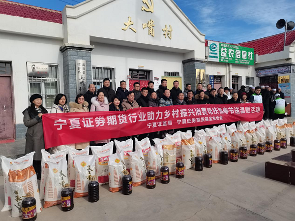 新春来临之际,宁夏证监局组织干部职工、宁夏证券期货基金业协会、辖区15家证券期货经营机构赴帮扶村海原县树台乡大嘴村进行春节慰问和消费帮扶活动,以实际行动助力巩固拓展脱贫攻坚成果、推动乡村振兴。