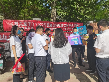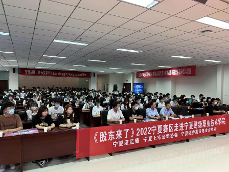 自《股东来了》2022活动于5月15日正式开启以来,宁夏赛区勇挑重担,在活动期间扎实开展了一系列宣推活动,初赛累计注册人数23473人次,举办现场及线上活动116场,其中发布专场动员会5场,组织《股东来了》走进上市公司及新三板挂牌公司9场,走进高校29场,走进投教基地6场,开展《股东来了》专项答题竞赛及现场客户推送活动21场次,利用网站、微信公众号等平台宣传28次,阅读量2万余人次,制作宣传品20余种,精选推送以“你好,注册制”为主题的抖音短视频11条,多措并举向投资者传递资本市场基础知识、法律知识、股东权益知识,引导投资者树立长期投资、价值投资、理性投资理念。