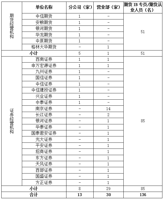 | 序号 | 单位名称 | 分公司(家) | 营业部(家) |