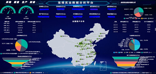 宝塔智能驾驶舱,能够给公司各种经营管理会议提供动态的实时经营指标分析数据,包括财务指标、销售指标、采购指标、生产指标、成本指标、资产指标、人力指标分析等。所有数据取自于业务系统,能直观反映当前企业经营管理现状。且能通过移动端、PC端及公司中控屏实时展示。