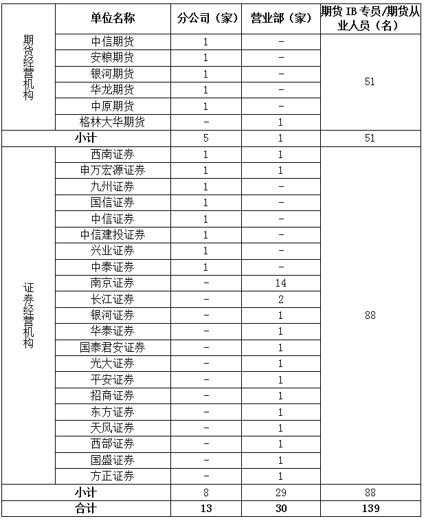 | 序号 | 单位名称 | 分公司(家) | 营业部(家) |