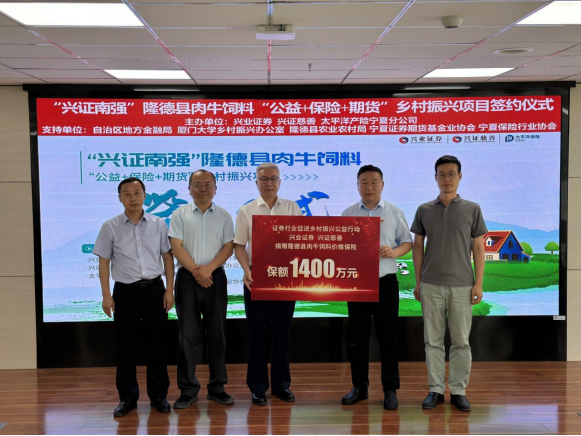 7月3日,兴业证券宁夏分公司与太平洋产险宁夏分公司举行“兴证南强”隆德县肉牛饲料“公益+保险+期货”乡村振兴项目签约仪式,兴业证券宁夏分公司总经理霍斌表示,本次兴业证券宁夏分公司携手各方落地肉牛饲料“公益+农业保险”帮扶项目,进一步解决隆德县肉牛养殖成本这一民生问题,捐赠隆德县肉牛饲料价格保险保额达1400万元,项目覆盖宁夏回族自治区隆德县沙塘镇张树村、杨河乡的肉牛养殖农户、合作社、家庭农场20661头牛,具体到每头牛折合0.19吨玉米,0.08吨豆粕,玉米单价2630元,豆粕单价3520元,每头牛单位保额玉米499.7元,豆粕281.6元,合计每头牛保额781.3元,累计保险数量3925.59吨玉米和1652.88吨豆粕,共5578.45吨。产业振兴是实现乡村振兴的关键所在,兴业证券坚持开发式帮扶,捐赠乡村振兴帮扶资金为肉牛养殖户、合作社、家庭农场等农业生产主体补贴投保,弥补饲料上涨对养殖户造成的损失,助力在饲料采购端、储存端等各养殖环节提质降本。相较于“输血”帮扶,兴业证券着力发挥金融公益优势和集团协同力量,助力帮扶地区特色产业提档升级,切实增强产业发展内生动力。