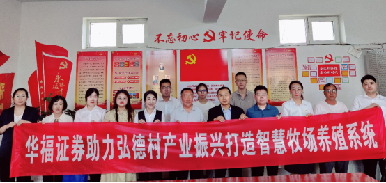 8月16日,为贯彻落实国家乡村振兴战略,响应中国证监会“一司一县”结对帮扶倡议,华福证券宁夏分公司在了解红寺堡区弘德村实际帮扶需求后,前往红寺堡区弘德村举行助力乡村产业振兴捐赠仪式,并向红寺堡区财政局捐赠145393元,帮助其完成各种智能硬件设备和软件采购。