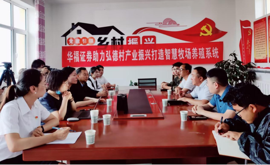 各单位领导进行座谈会,共同探讨乡村产业发展战略,寻求乡村振兴之路?;嵋槲撇捣⒄?、基础设施建设、人才培养等方面展开了深入讨论。华福证券公司表示,将捐赠资金用于建设肉牛养殖基地,助力乡村产业振兴。
