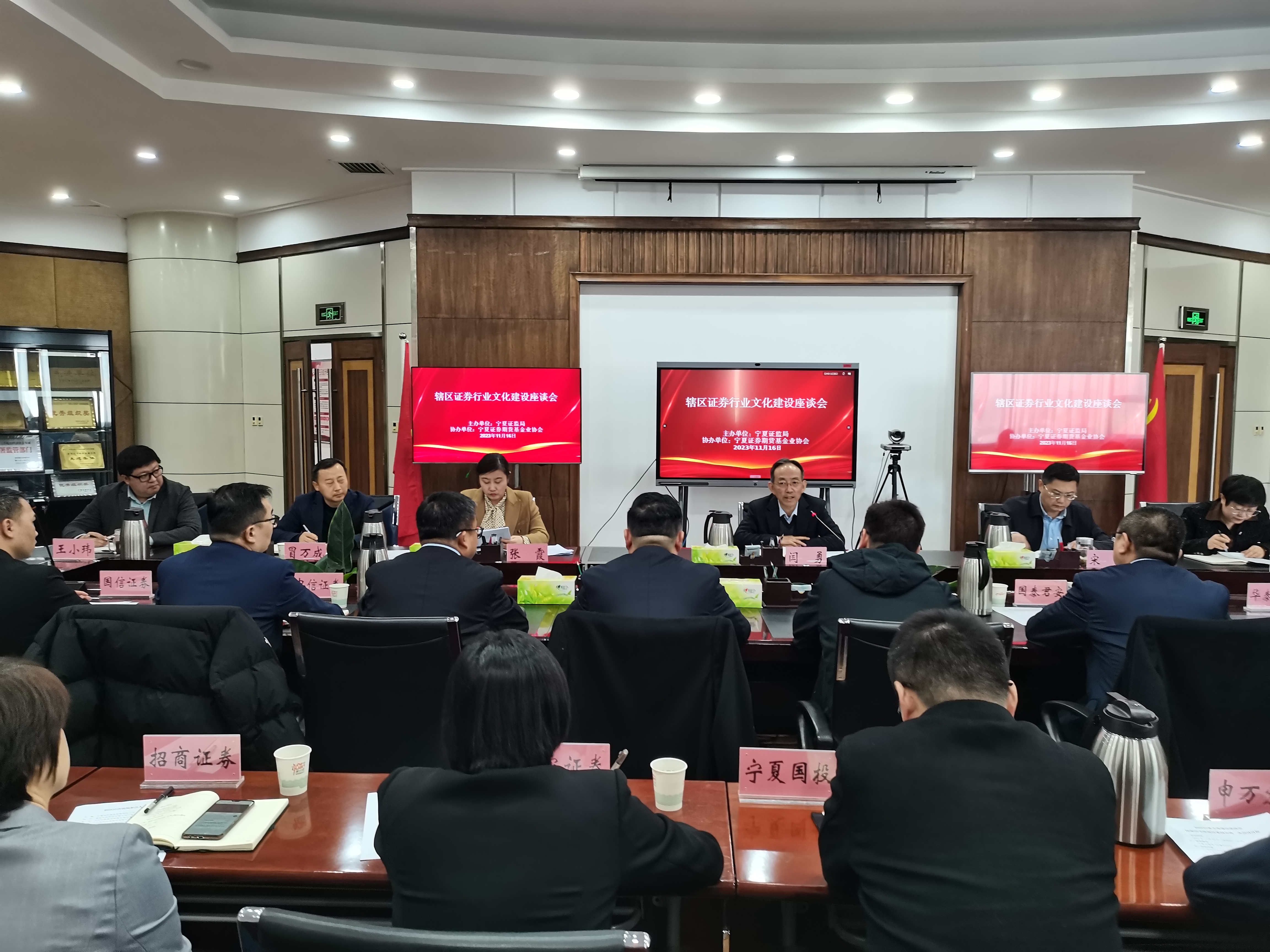 近日,宁夏证监局组织召开辖区证券基金行业文化建设座谈会,传达中央金融工作会议精神,总结辖区行业文化建设经验做法,谋划当前和今后一个时期的工作,努力开创辖区证券基金行业文化建设新局面。辖区行业协会负责人、证券基金经营机构代表参会。