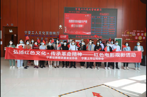 为深入推进党史学习教育,传承红色基因、牢记初心使命,宁夏证券期货基金业协会、宁夏上市公司协会于9月15日至16日组织两场红色电影观影活动,此次观影活动播放《血战湘江》、《中国医生》两部影片,来自辖区上市公司、证券期货经营机构80余名职工和投资者参与观影。
