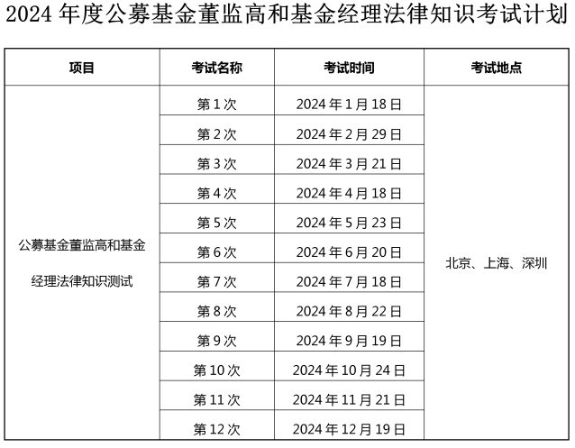 2.董监高水平评价测试和基金经理法律知识考试拟在北京、上海、深圳举办12次。