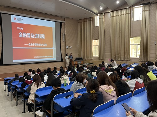 为推进金融知识教育进校园,全面提升学生们的金融素养及金融安全防范意识,东方证券银川民族北街证券营业部于10月26日前往宁夏职业技术学校,为102名同学开展金融知识进校园主题讲座。讲座内容围绕?;じ鋈诵畔?、校园贷诈骗、 防范电信网络诈骗等内容,帮助学生提升识别非法金融能力,强化学生反假防诈的意识及能力。