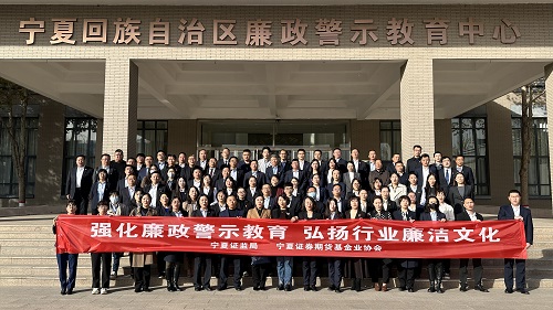 在宁夏证监局的指导下,11月2日,宁夏证券期货基金业协会组织协会会员,赴宁夏回族自治区廉政警示教育中心开展廉洁从业警示教育活动。宁夏证监局有关负责同志、协会廉洁文化建设委员会委员、银川地区各证券期货经营机构负责人、党建负责人等近100人参加。