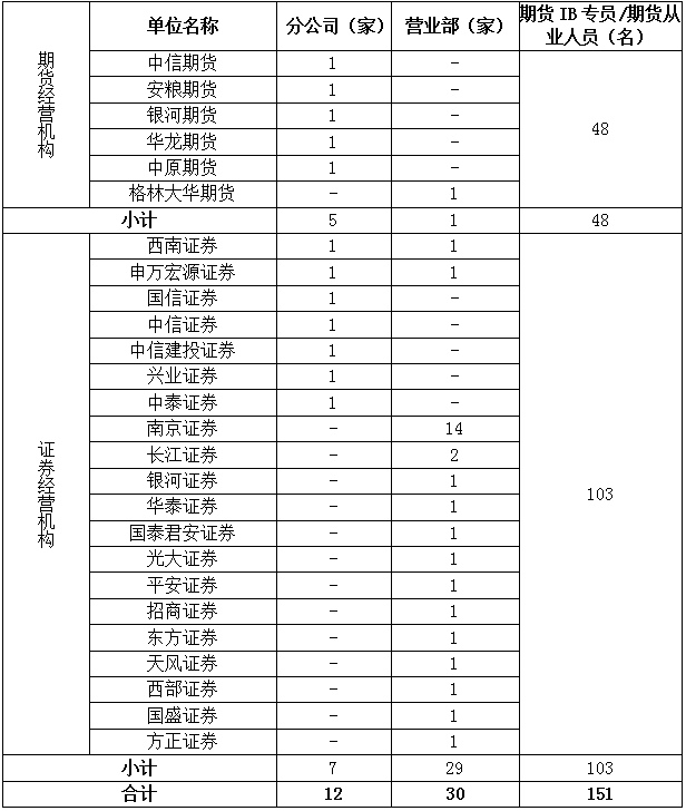 | 30 | 中信建投证券宁夏分公司 | 1 |