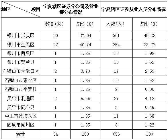 | 宁夏辖区证券分公司及营业部情况 | |||