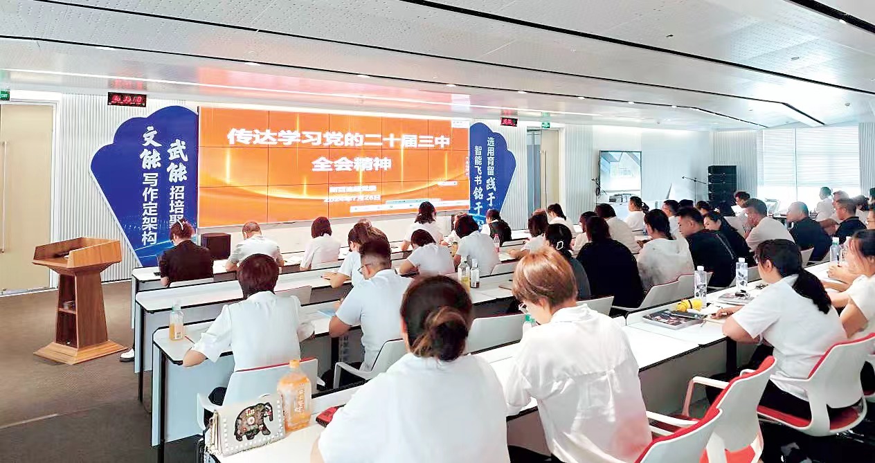 会议强调,要以党建为引领,不断提升经营业绩,系统性贯通全过程,统一思想,提升认知。学习宣传贯彻党的二十届三中全会精神是当前和今后一个时期一项重大政治任务,要认真筹划、精心组织,以上率下、整体联动,扎实推动全会精神在新百落地见效。抓好学习研讨,坚持从党组做起、从党员领导抓起,深入研读习近平总书记受中央政治局委托所作的工作报告、全会《决定》和《公报》全文,吃透精神实质,把握核心要义,紧密结合公司及门店实际,组织制定学习和培训计划,在全系统迅速掀起学习宣传贯彻热潮。
