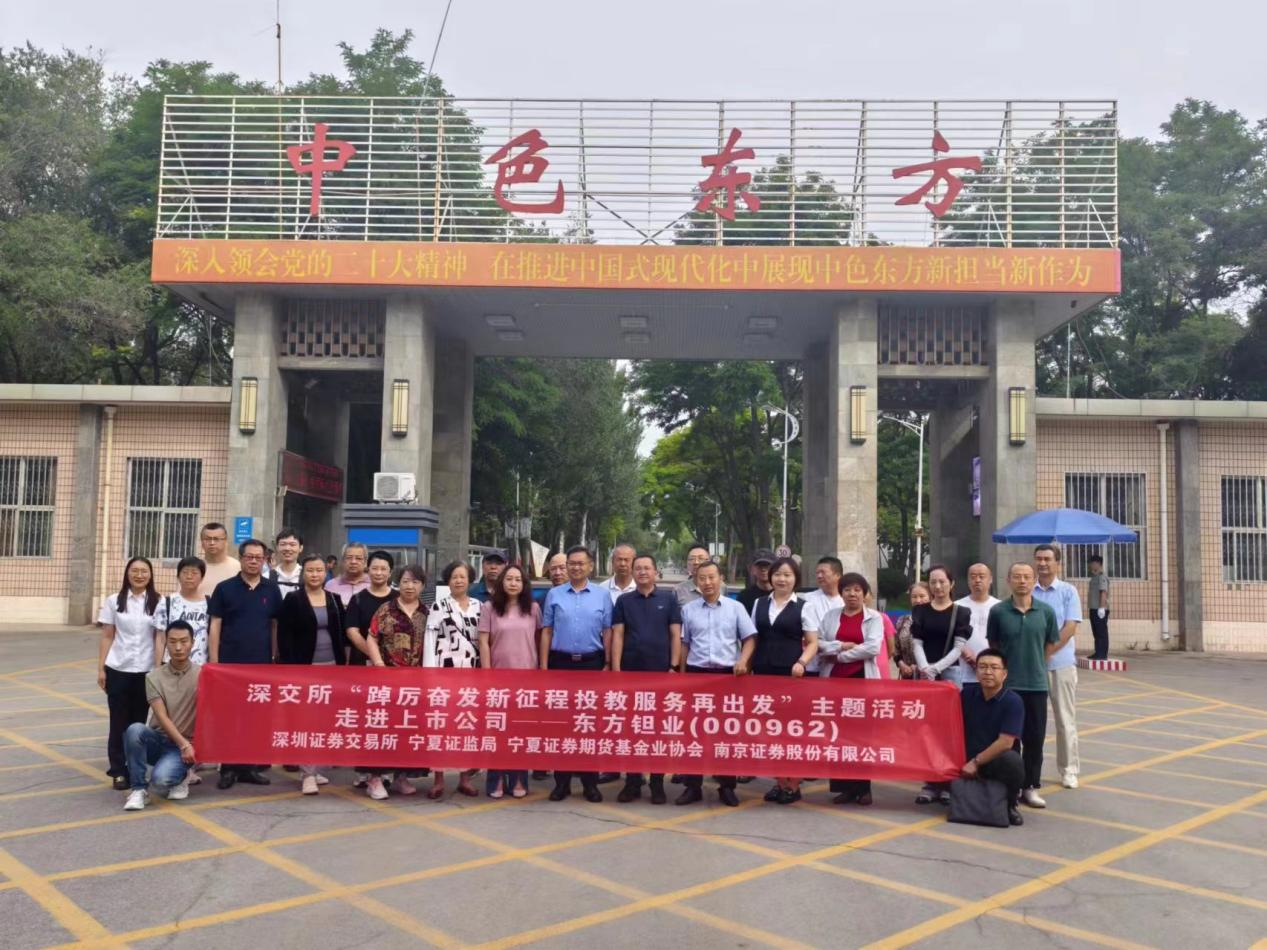 6月20日、6月21日,主办单位带领投资者分别走进辖区上市公司东方钽业、银星能源进行实地参观交流。上市公司高管带领投资者参观公司展厅、生产车间等区域,面对面介绍企业生产经营情况和长期发展战略,耐心细致解答投资者关心的问题,与投资者进行充分互动交流。广大投资者表示,实地考察上市公司,实现了投资者与上市公司多方面互动与了解,这不仅帮助投资者做出更明智的投资决策,也有助于提升投资者关系管理水平,进而推动公司可持续发展。
