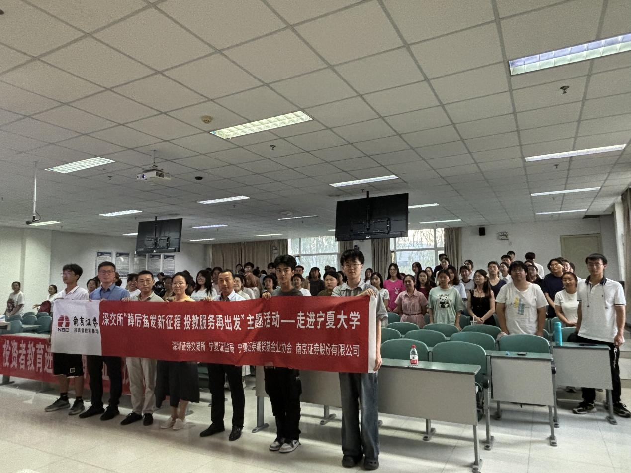 为深入贯彻落实中央金融工作会议精神以及新“国九条”有关要求,更加有效?;ず猛蹲收咛乇鹗侵行⊥蹲收吆戏ㄈㄒ?,引导投资者树立正确投资理念,2024年6月19日至21日,由深圳证券交易所、宁夏证监局、宁夏证券期货基金业协会主办,南京证券宁夏分公司、长江证券宁夏分公司承办的“踔厉奋发新征程 投教服务再出发”主题活动在宁夏举行。本次活动通过走进上市公司、走进高校、走进社区、开设投教大讲堂、召开投资者座谈会等形式,积极宣传介绍近年来资本市场改革发展情况,向广大投资者普及风险教育和相关金融知识,持续倡导理性投资、价值投资、长期投资理念,着力提升投资者风险防范意识及研究分析能力。