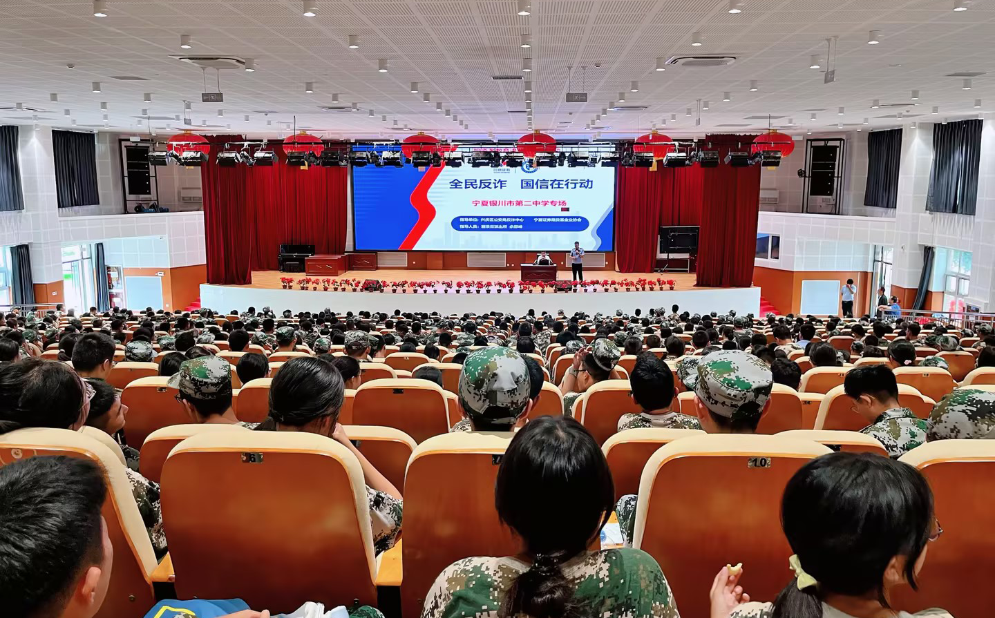 为切实维护全民合法权益,提高全民反电信网络诈骗意识和能力,8月14日,国信证券宁夏分公司党支部反诈先锋队在宁夏证监局、兴庆区反诈中心、宁夏证券期货基金业协会的指导下,联合银川市公安局兴庆区分局丽景街派出所一同走进银川市第二中学开展“全民反诈 国信在行动”投教活动。