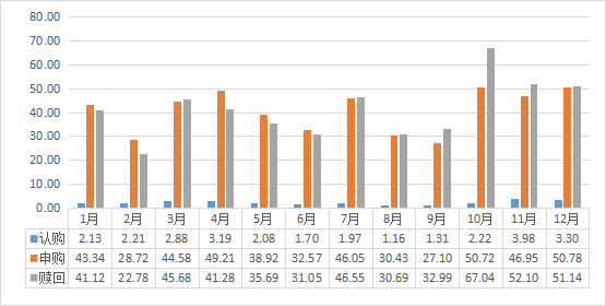 2024年,宁夏销售开放式基金517.50亿元,同比增幅22.46%;其中认购开放式基金28.12亿元,同比降幅24.87%;申购开放式基金489.38亿元,同比增幅27.06%;赎回开放式基金498.10亿元,同比增幅46.59%。