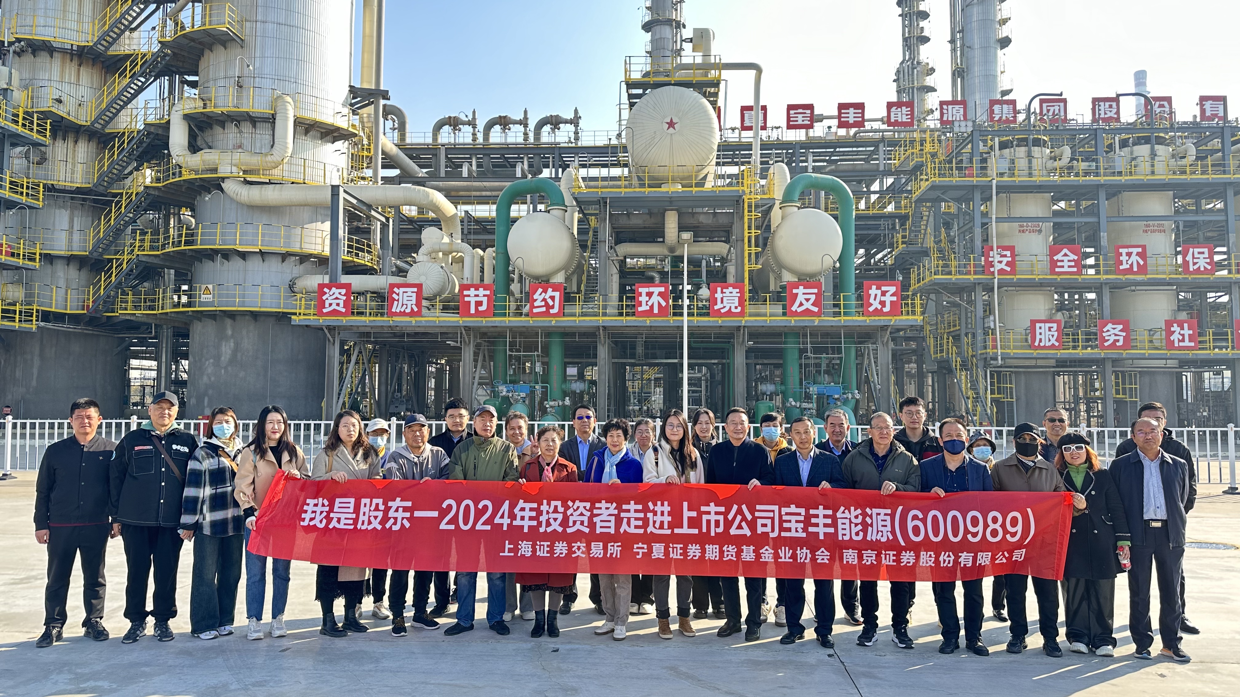 为深入贯彻落实中央金融工作会议精神以及新“国九条”有关要求,持续讲好沪市上市公司高质量发展故事,营造理性投资、价值投资、长期投资的市场氛围,引导投资者更好的认识沪市上市公司投资价值、树立积极行权意识,2024年11月6日,上海证券交易所联合宁夏证券期货基金业协会、南京证券,组织开展“我是股东——2024年投资者走进上市公司宝丰能源”活动。本次活动由上海证券交易所、宁夏证券期货基金业协会、南京证券联合主办,南京证券投教基地和银川民族北街证券营业部承办,共有30余名中小投资者参加了此次活动。