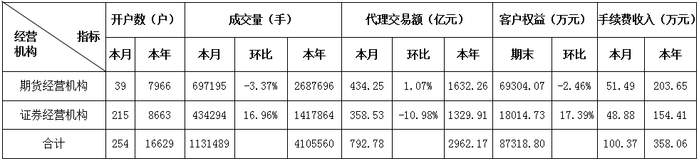 本月,开设证券账户1.51万户,开设资金账户0.91万户。