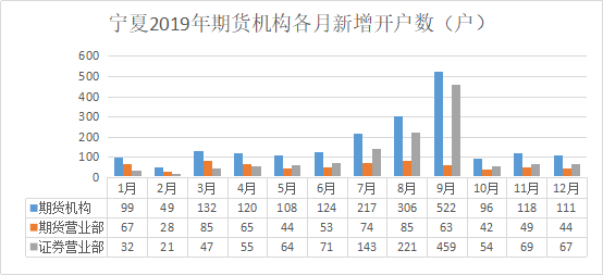 截至2019年底,宁夏期货机构共累计开户10065户,其中,期货营业部累计开户5059户,证券营业部累计开户5006户。